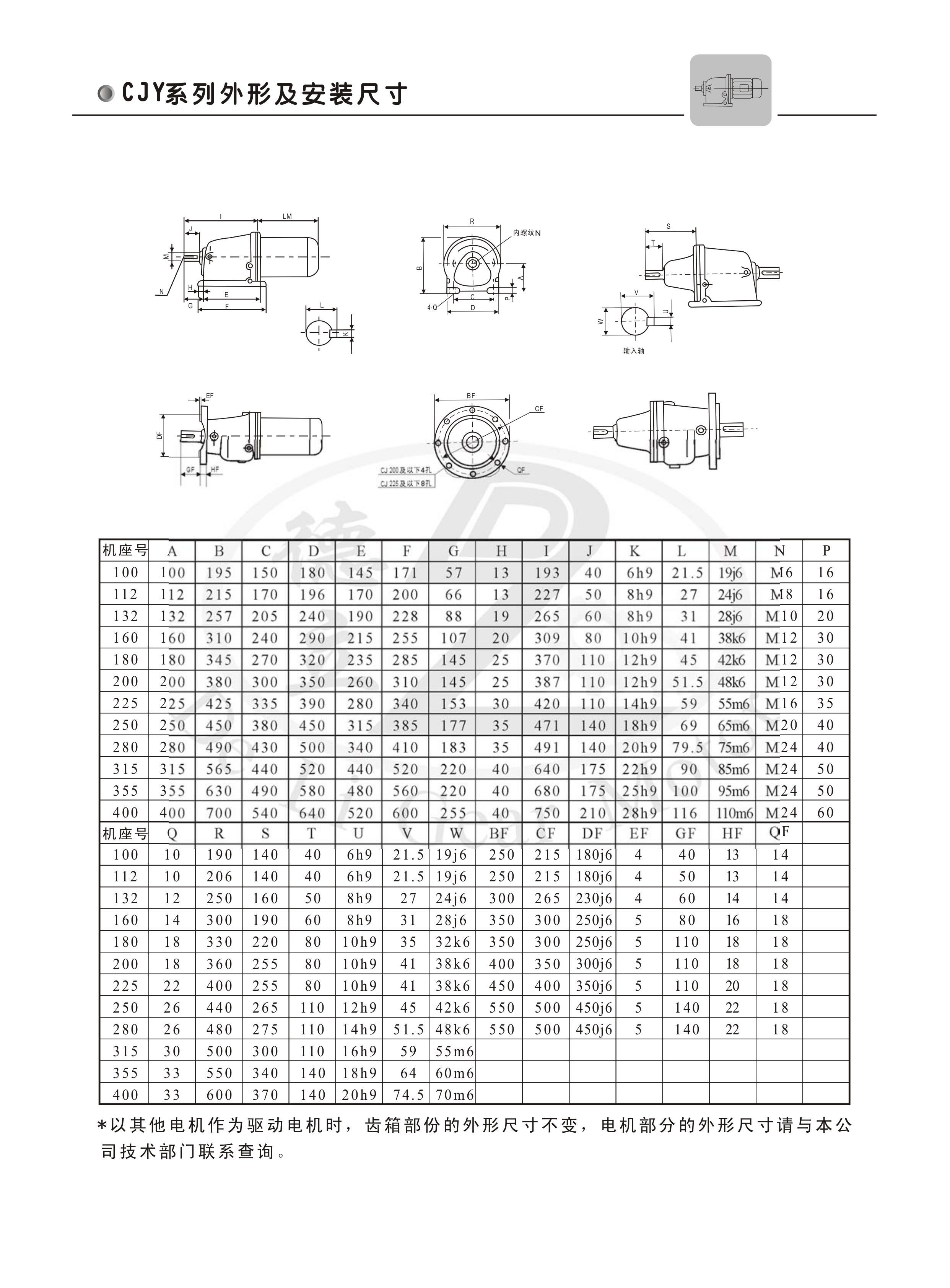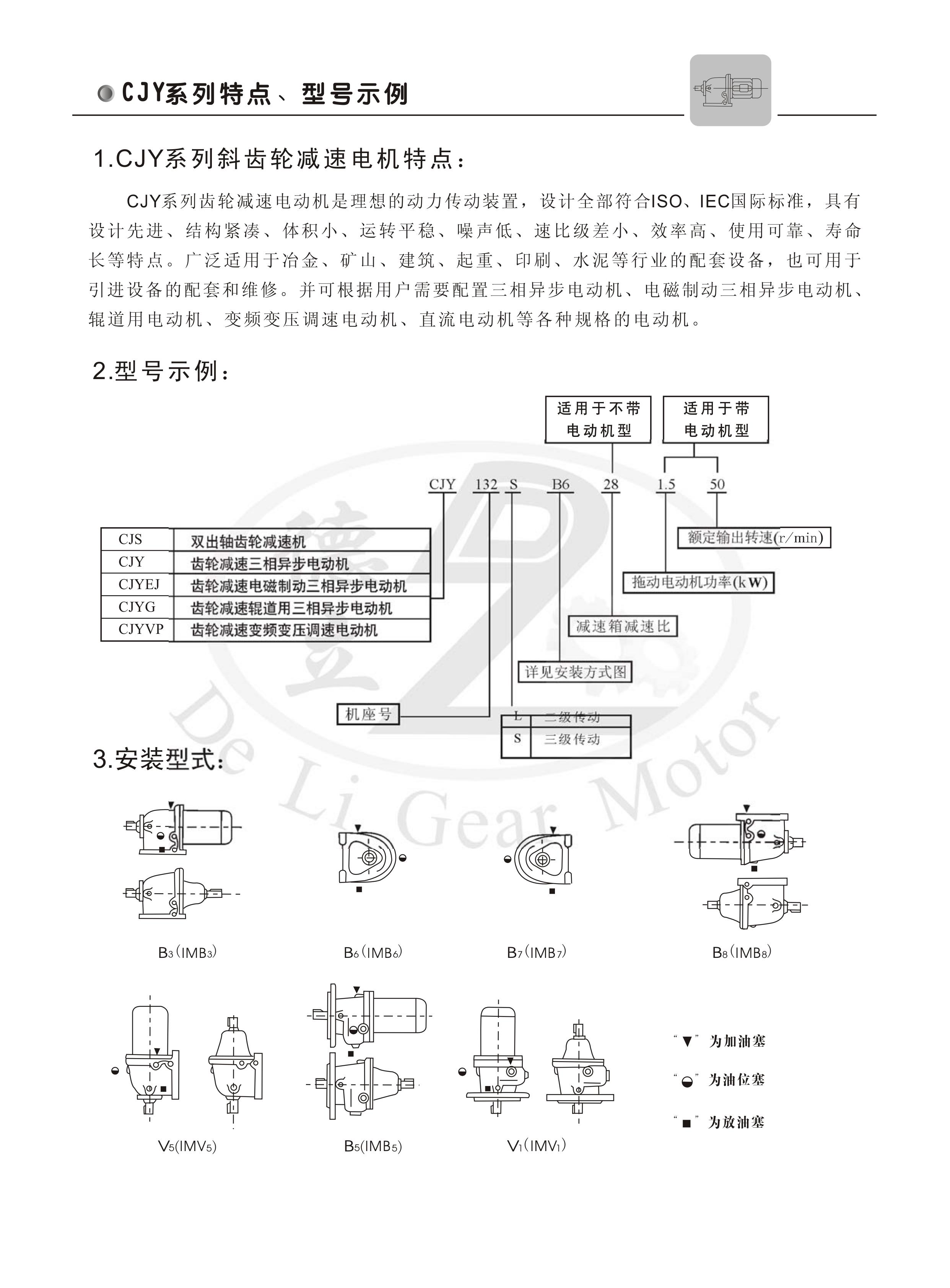 CJY系列斜齒輪減速電機簡介:CJY系列斜齒輪減速電機產(chǎn)品符合ISO、IEC國際標準,設(shè)計先進、結(jié)構(gòu)緊湊、體積小、使用方便、噪聲小、效率高、使用可靠、等等特點。使用該產(chǎn)品同時客戶可以根據(jù)自