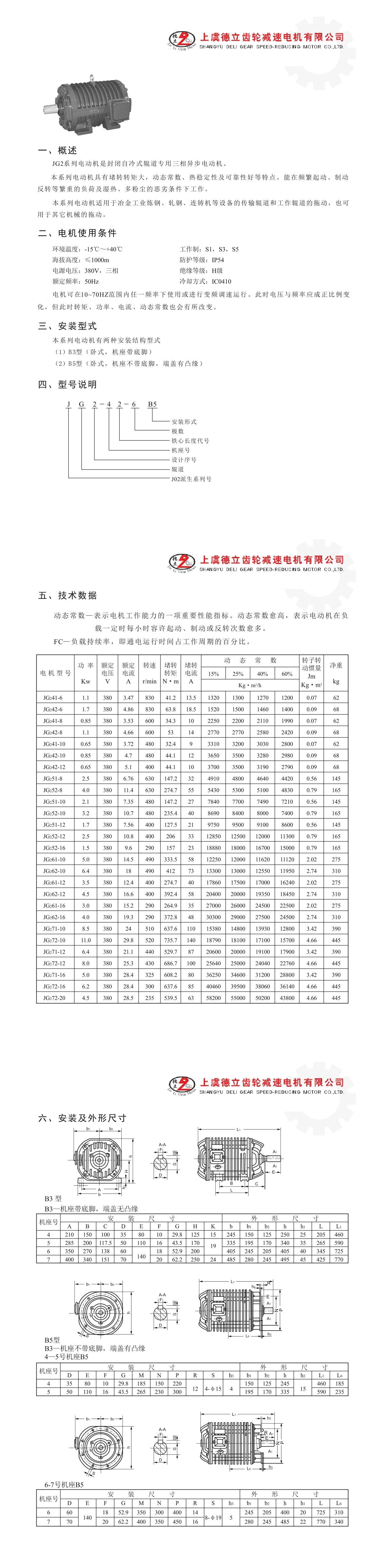 JG2系列電動機是封閉自冷式輥道用三相異步電動機,是我廠設計的系列產品,具有堵轉轉矩大,動態(tài)常數(shù)高的特點,能構在頻繁起動、制動和反轉的惡劣條件下工作,適用于冶金工業(yè)(軋鋼、煉鋼等) 傳送輥道和工作輥道的拖動,也可以用于拖動其他類似機械。